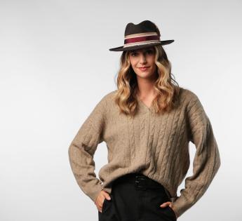 Un assemblage de plumes vient souligner les nuances de la garniture, faisant écho à chaque teinte avec élégance. Le feutre de laine naturellement imperméable assure confort et maintien, tout en mettant en valeur le travail minutieux de notre modiste. Une pièce forte, pensée pour celles et ceux qui aiment affirmer leur style avec douceur.