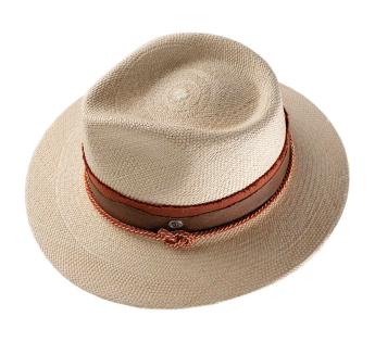 Son tressage authentique, sa belle présence et sa ligne bien dessinée lui donnent un charme naturel immédiat. La garniture mêle avec subtilité gros-grain, effet cuir et corde tressée, dans un jeu de matières inspiré de l’univers marin et des grands espaces.