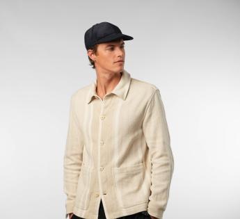 Casquette d’inspiration baseball revisitée en version hiver, avec un mélange de matières à la fois douces et contrastées. La calotte en velours côtelé apporte du relief et une touche vintage, tandis que la visière en laine texturée assure chaleur et confort.