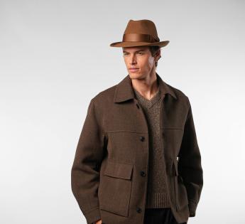 La forme Fedora intemporelle est sublimée par un bord franc modelable, qui peut être porté tombant ou relevé, selon le style désiré. Un chapeau à la fois raffiné, technique et polyvalent, pensé pour ceux qui cherchent l’élégance sans compromis.