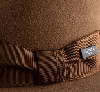 Fabriqué à la main en Italie, ce chapeau en feutre poils incarne le sommet du raffinement. Son feutre brossé révèle un fini velouté, qui accroche la lumière et souligne ses traits délicats. Garni par un large gros-grain à nœud classique, le chapeau est ponctué d’une plaque siglée Guerra 1855, gage d’un savoir-faire artisanal hors pair.