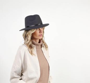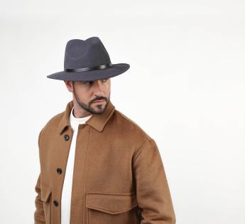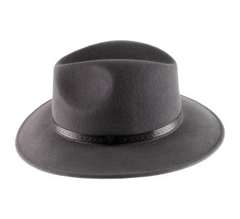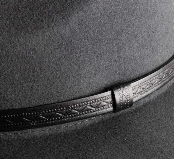 Chapeau de forme traveller offrant un confort thermique optimal pour une température constante et agréable en permanence. Sa matière est en effet du feutre issu d'une laine très fine, chaude et légère. Son toucher est doux et sa forme est décorée d'une garniture de cuir gravé avec motif géométrique.