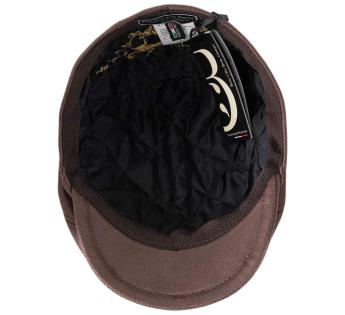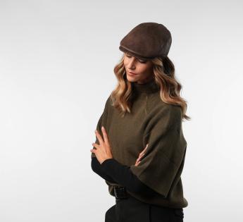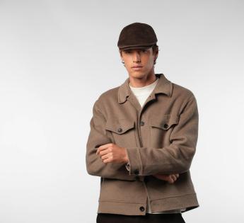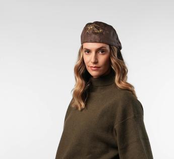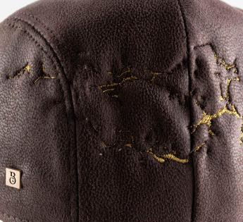 Avec sa matière souple au toucher peau de pêche, cette casquette bec de canard évoque la patine d’un cuir vieilli avec élégance. Son fini brun profond est discrètement animé d’un motif craquelé doré brodé à l’arrière, clin d’œil à l’art du kintsugi, où l’imperfection devient précieuse.