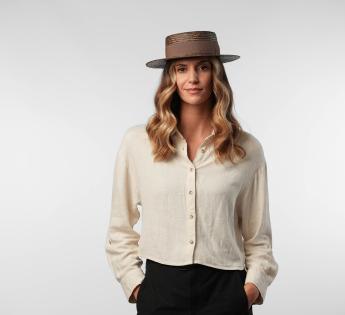 Canotier en tresse très fine, pour une plus grande résistance et plus d'élégance. Son verni vient apporter un léger éclat rafraichissant.