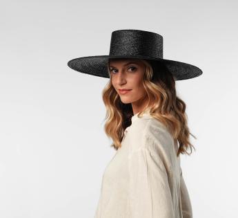 Ce chapeau d'été en paille cousue est à canotier à bord XXL. Ses bord flottant lui confère un air de capeline. La finesse du tressage et son bord très large lui apporte un haut pouvoir couvrant. Efficace contre le soleil grâce également à sa densité, il distinguera discrètement notre tenue.