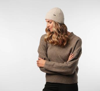 Bonnet en laine fine, d'une seule épaisseur, doux et respirant. Son revers s'adapte : en un pli, il réchauffe les oreilles ; il se déplie, façon bonnet oversize ; ou s'enroule vers le haut, façon docker
