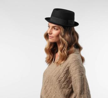 Pour un style jazzy et élégant à la fois, optez pour ce Porkpie très chic avec sa bande de garniture, ses bords relevés et sa calotte plutôt basse qui vous attribueront toutes les caractéristiques légendaires de ce chapeau de star. Un modèle très classe donc, se déclinant sous toutes les couleurs.