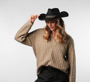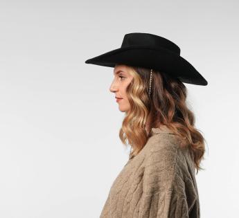 Ce chapeau western s’impose par la liberté qu’il offre à son porteur. Son large bord, entièrement laitonné, peut être modelé à volonté : relevé pour un esprit cowboy affirmé, légèrement incurvé pour un style plus discret, ou laissé droit pour une allure contemporaine. Un vrai terrain de jeu stylistique.