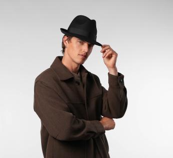 Son galon en gros-grain ton sur ton, ponctué d’une griffe métallique discrète, renforce son esthétique épurée. Idéal par temps humide ou en voyage, ce chapeau en feutre déperlant allie protection, souplesse et maintien impeccable. Un indispensable pour les amateurs de couvre-chefs pratiques, au look soigné et structuré.