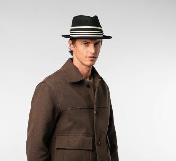 Équilibre parfait entre sobriété et audace, ce chapeau Fédora à bord mi-long séduit par sa forme discrète et facile à adopter au quotidien. Confectionné en feutre léger mais chaud, il est rehaussé d’un galon ultra graphique mêlant maille texturée, satin lisse et finitions contrastées.