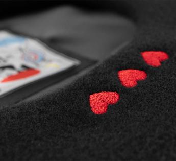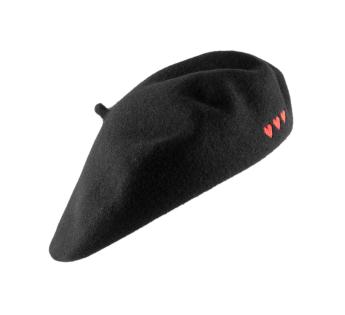 Ce béret noir en pure laine mérinos est orné de trois cœurs rouges brodés, comme des points de suspension suggérant une histoire en cours. Un détail discret mais expressif, symbole universel de l’amour et de ce qui reste à écrire.