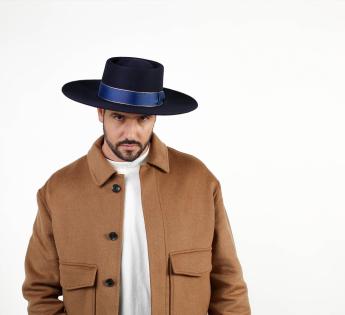 Chapeau type Cordobés, élément essentiel du traditionnel costume de l'Andalousie. Devenu un accessoire tendance, il complète de façon décontractée ou habillée notre composition en plaçant notre tête sous une calotte basse format télescope.