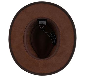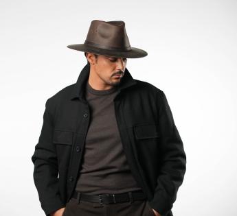 Aventure et caractère au rendez-vous avec ce chapeau traveller en cuir de buffle signé Aurega. Sa silhouette structurée et son cuir à la patine naturelle révèlent un style franc et intemporel. Relativement rigide, il garde un bord bien droit, tout en conservant une légère souplesse naturelle qui accompagne le mouvement sans se déformer. Son bord large offre une protection efficace contre les intempéries, et sa calotte haute allonge avec distinction la ligne du visage.