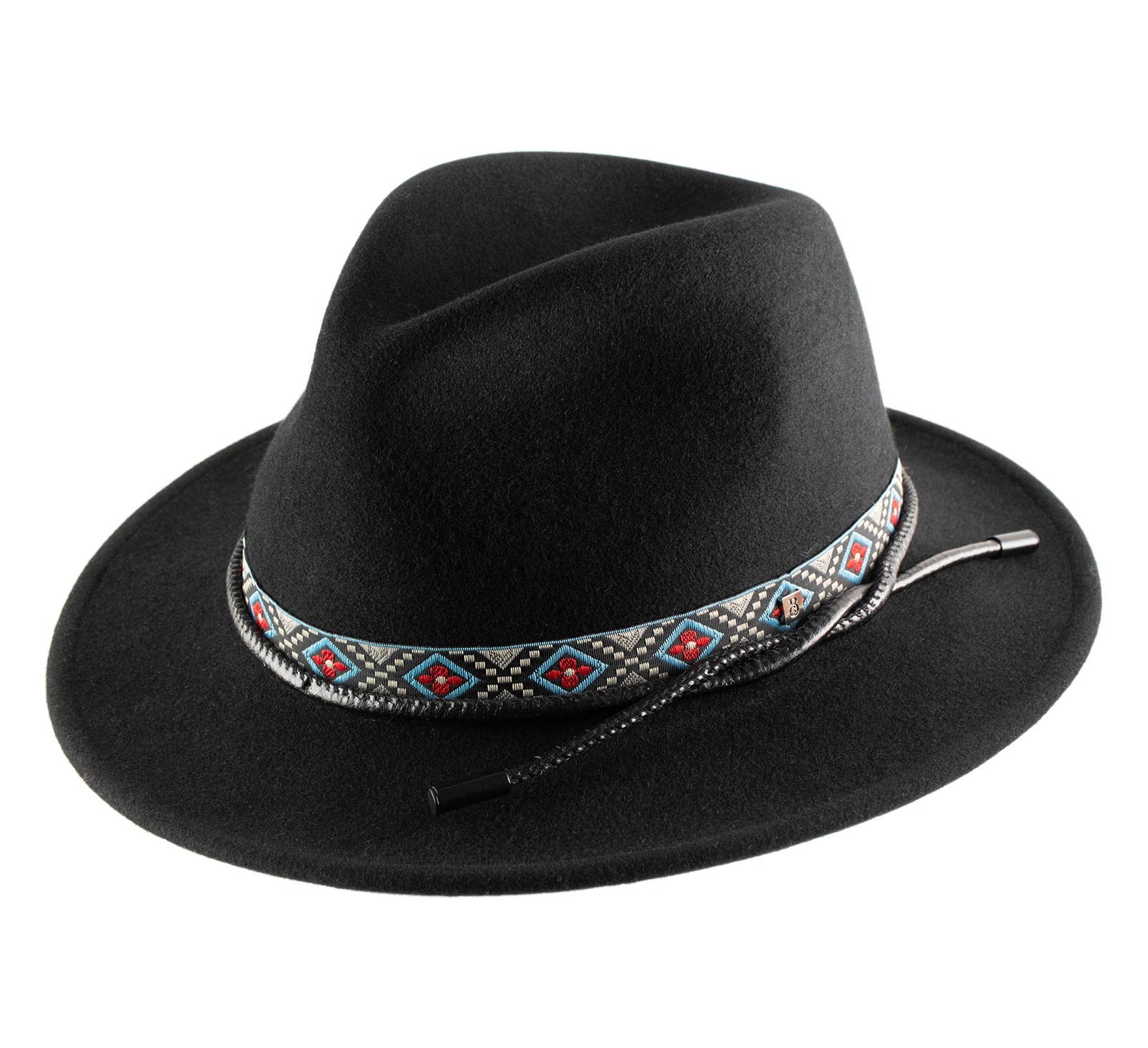 Son galon jacquard à motifs géométriques colorés évoque les codes du style "sage western", twisté par un lacet en cuir avec embouts métalliques. La griffe discrète signe notre savoir-faire artisanal. Un détail qui fait toute la différence. Un accessoire pensé pour les amateurs d’authenticité, de belles finitions et de pièces durables.
