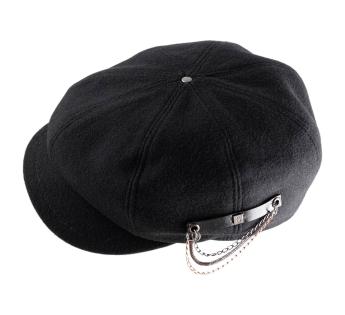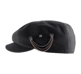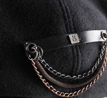 Cette casquette casse les codes avec audace. Sa ligne décalée, combinée à une garniture en cuir et chaînes métalliques ajoutée dans notre atelier à Lyon, crée un équilibre parfait entre allure rock et raffinement. Fabriquée en Italie, elle gagne en caractère grâce à ce travail artisanal unique.