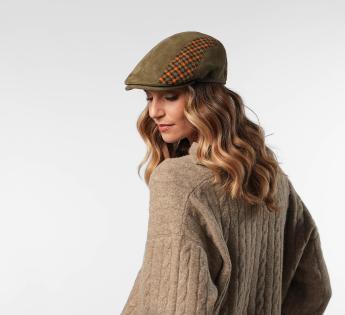 Alliance élégante du cuir velours et de la laine vierge, cette casquette plate séduit par sa coupe ajustée et sa silhouette structurée. Le motif tartan revisité, en teintes naturelles animées de nuances plus vives, crée un jeu de matières saisissant.