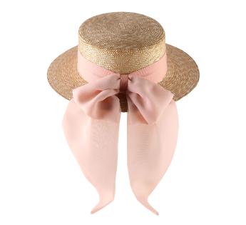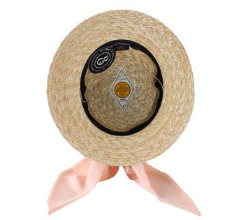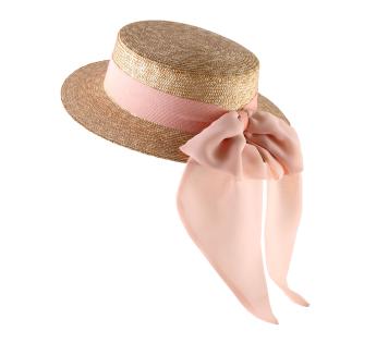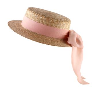 Canotier réalisé avec de la paille cousue finement en Italie. Il est embelli par un nœud en mousseline fait-main dans notre atelier en France. Il s'agit d'un modèle pour petite fille, tout en élégance.