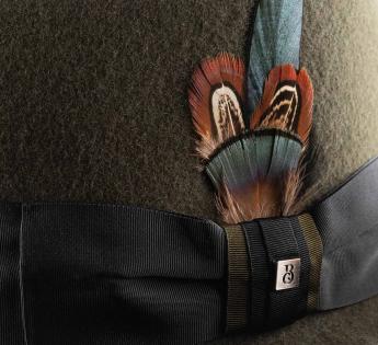 Sa forme compacte et raffinée est sublimée par un nœud satiné, rehaussé d'une plume discrète, évoquant une sophistication discrète. La légèreté du feutre offre un confort inégalé, tandis que la bague travaillée assure une tenue parfaite, mêlant tradition et innovation.