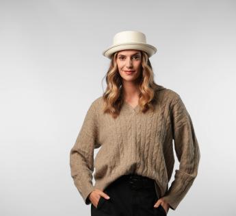 Minimaliste, graphique et résolument tendance : entre petite cloche très rétro et bob en feutre contemporain, ce chapeau revisite les codes avec une silhouette structurée et épurée. Confectionné en laine feutrée, il est naturellement imperméable, idéal pour affronter les saisons avec style.