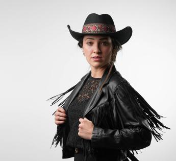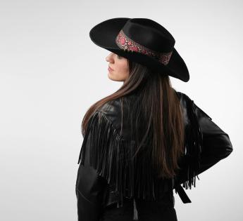 Chapeau western au style bohème, confectionné dans notre atelier à Lyon. Fabriqué en feutre de laine italien, chaud et naturellement imperméable, il se distingue par son large bord laitonné modulable selon l’allure recherchée. Une création artisanale pensée pour affronter l’hiver avec élégance et caractère.