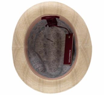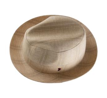 Ce chapeau séduit d'emblée par sa sobriété raffinée. Sa ligne nette, son ton lumineux et son chevron presque ton sur ton lui donnent un relief subtil, d’une grande élégance et finesse.