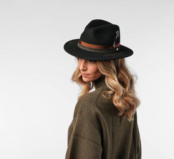 Entièrement façonné dans un feutre de laine dense et structuré, ce modèle revisite la forme classique du traveller à travers une esthétique symbolique inspirée de l’univers poétique de Lewis Carroll. Une clé ancienne, fixée en lieu et place de la plume traditionnelle, devient l’emblème du mystère du temps, un clin d’œil direct au Chapelier fou d’Alice.