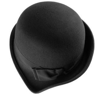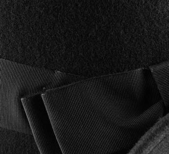 Avec sa silhouette élégante et sa calotte haute, ce chapeau cloche affirme un style résolument rétro. Son bord relevé à l’avant donne de la structure à la ligne et encadre délicatement le visage. Le galon en gros-grain ton sur ton, terminé par un nœud plat, accentue son raffinement sans superflu.