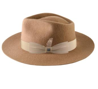 Le Fedora est ici sur-mesure et fait d'un feutre de laine qui a été imperméabilisé. En accompagnant nos tenues cet hiver, ce modèle nous procure plus de sérénité avec sa protection efficace et renforcée. Ses bords sont plats et entourent une couronne en forme de goutte d'eau pour un résultat fort élégant.