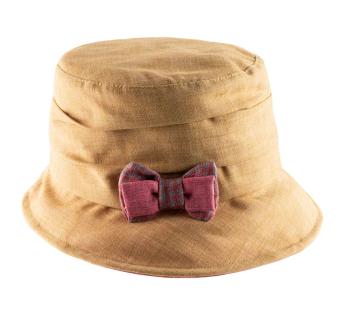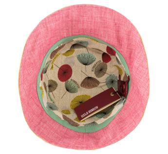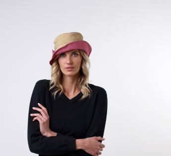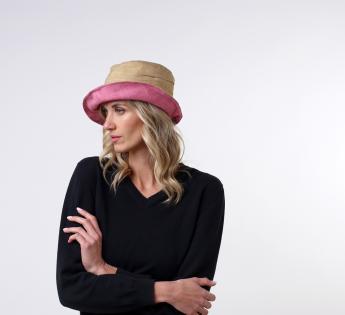 Le plissé permet d'ajouter du volume sur le bandeau du chapeau. Il est garni d'un élégant nœud assorti avec le dessous du bord. Quant à son confort, il a également été travaillé et accentué par une doublure de coton.