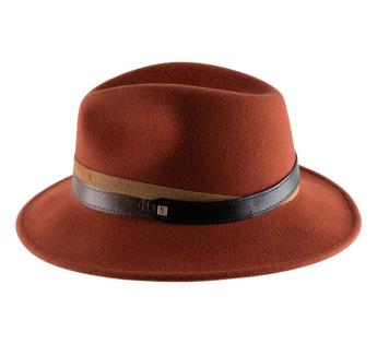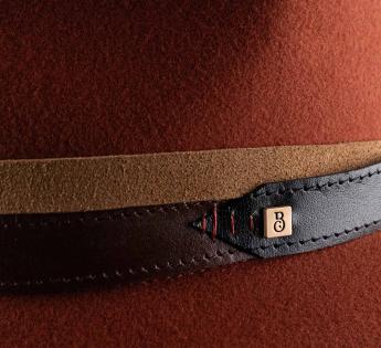 Alliance de style et de caractère, ce fedora en feutre se distingue par sa garniture en cuir multi-texturé. Surpiqûres, broderies ton sur ton et griffe dorée viennent sublimer ce mix brut et élégant. Imperméable et pliable, il vous accompagne sans contrainte, que ce soit en ville ou en voyage.
