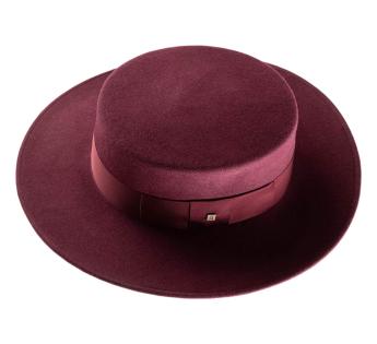 Avec sa forme iconique et sa ligne parfaitement structurée, ce chapeau cordobes en feutre incarne une élégance radicale. Sa calotte droite s’équilibre avec son bord plat, pour une silhouette nette et résolument moderne. Le galon en satin, soigneusement plié et orné d’un discret emblème métallique, apporte juste ce qu’il faut de contraste et de raffinement.