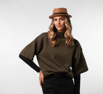 Confectionné en feutre de laine, il offre structure, confort et tenue parfaite. Sa forme typique à calotte plate et bord relevé affirme une allure moderne, tout en restant accessible et facile à porter. Un chapeau au caractère bien trempé, pensé pour celles et ceux qui aiment affirmer leur style sans en faire trop.