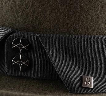 Style affirmé et détails soignés : ce porkpie revisité joue la carte du contraste subtil entre esprit preppy et élégance intemporelle. Son galon en gros-grain, travaillé comme un col de chemise et orné de deux boutons brodés, capte immédiatement l’œil. Une griffe discrète et une fine broderie sur le bord, clin d’œil au fil des boutons, viennent renforcer cette harmonie raffinée.
